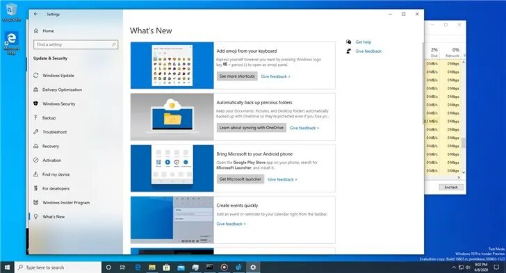 此外,有网友发现,Windows 10 快速预览版19603还在设置中增加了“新增功能”页面,该页面介绍了系统中的一些新功能,还是比较实用的。单击某个项目时,会弹出一个带有更多详细信息的弹出窗口,允许用户发送反馈,但IT之家了解到,该功能当前似乎尚未激活。